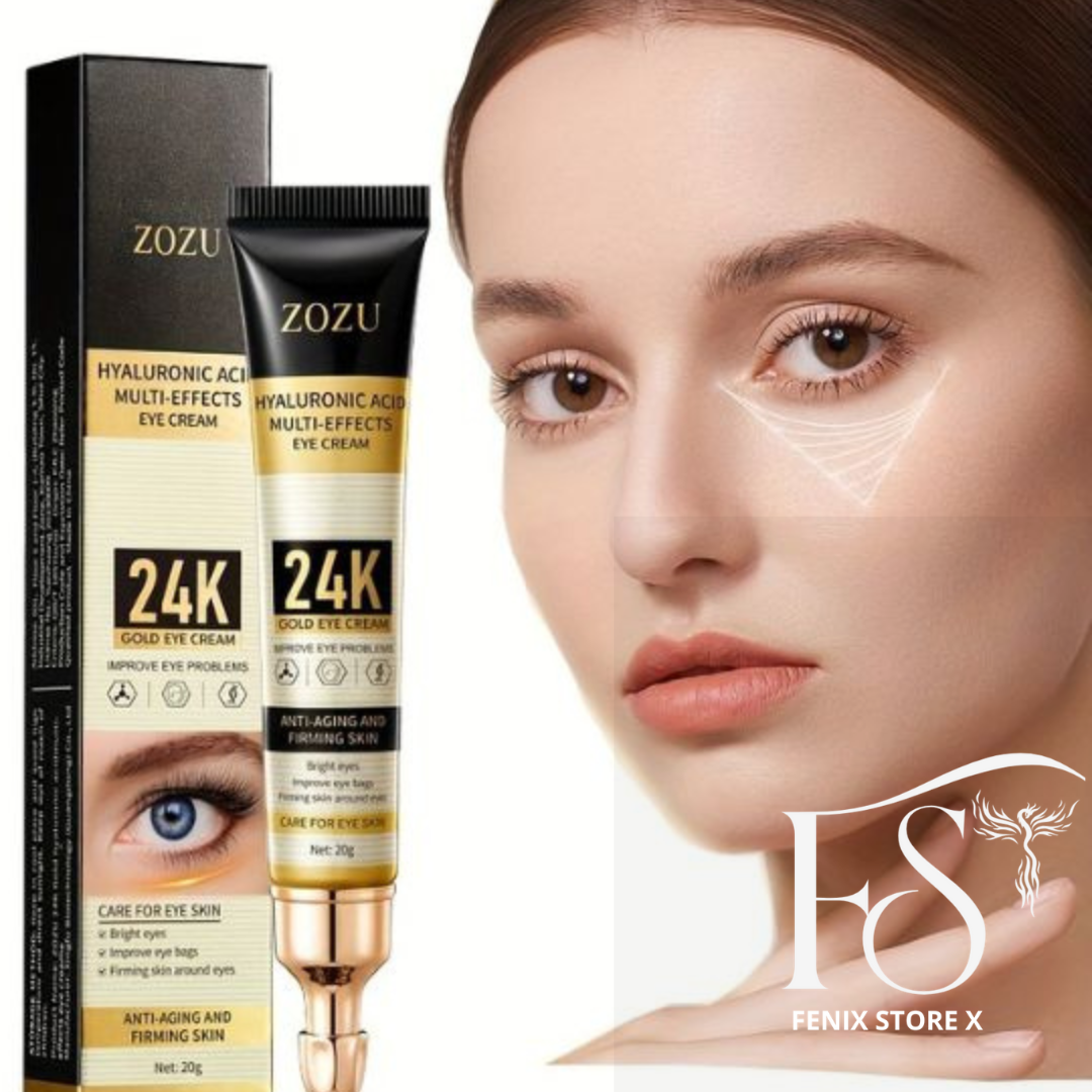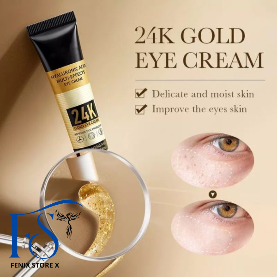 El oro 24K activa la circulación y potencia la luminosidad natural, mientras el ácido hialurónico rellena líneas finas y mejora la elasticidad del contorno ocular.